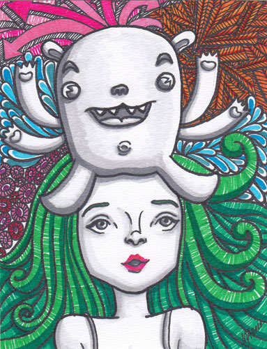 Here are some of the artworks I made. I used ordinary black markers for the lines, the Tria markers for the gray hues, the colorful Faber-Castell pens, watercolor for some of the backgrounds, and watercolor paper.