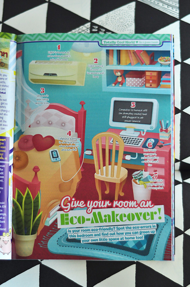 I also worked on an article about giving your room an “Eco-Makeover”. All of my previous illustrations for Total Girl consisted of at least one character, so this is something new for me.