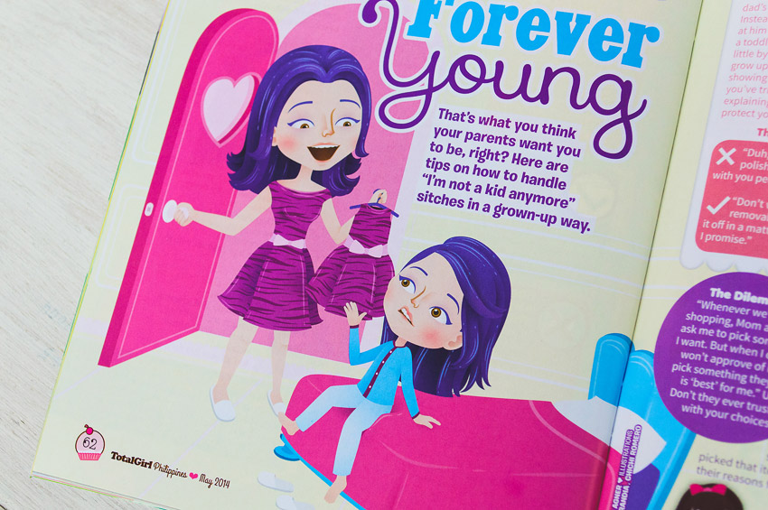 Total Girl Philippines, May 2014 May 29, 2014Melissa Arandia -justdoodle Leave a comment Here are two illustrations I worked on for the May 2014 issue of Total Girl Philippines. “Totally Embarrassing”, May 2014 vector work, “Totally Embarrassing” “Totally Embarrassing”, May 2014 “Totally Embarrassing”, May 2014 “Forever Young” article illustration, May 2014 vector work, “Totally Embarrassing” “Forever Young” article illustration, May 2014 “Forever Young” article illustration, May 2014 Share this post: Click to share on X (Opens in new window) X Click to share on Facebook (Opens in new window) Facebook Click to share on Reddit (Opens in new window) Reddit Click to print (Opens in new window) Print Click to email a link to a friend (Opens in new window) Email Like Loading...