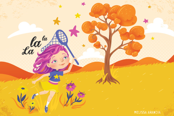 I was able to incorporate some details on the illustration’s background. I just love how the contrast of colors turned out here, with the background color being bright, yet making the characters’ colors pop.
