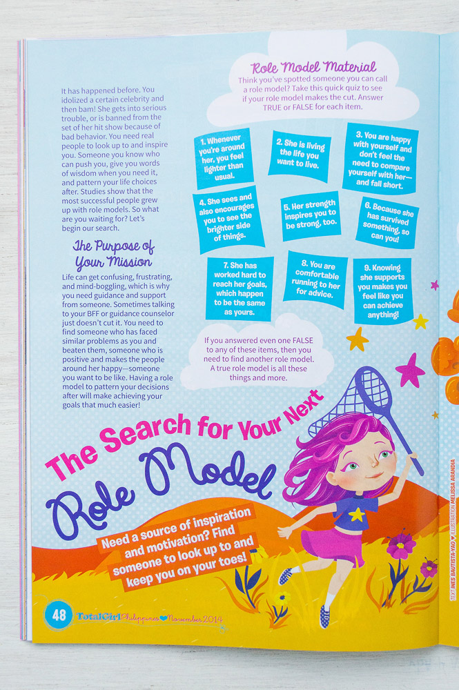 These editorial illustrations are in the November 2015 issue of Total Girl Philippines.