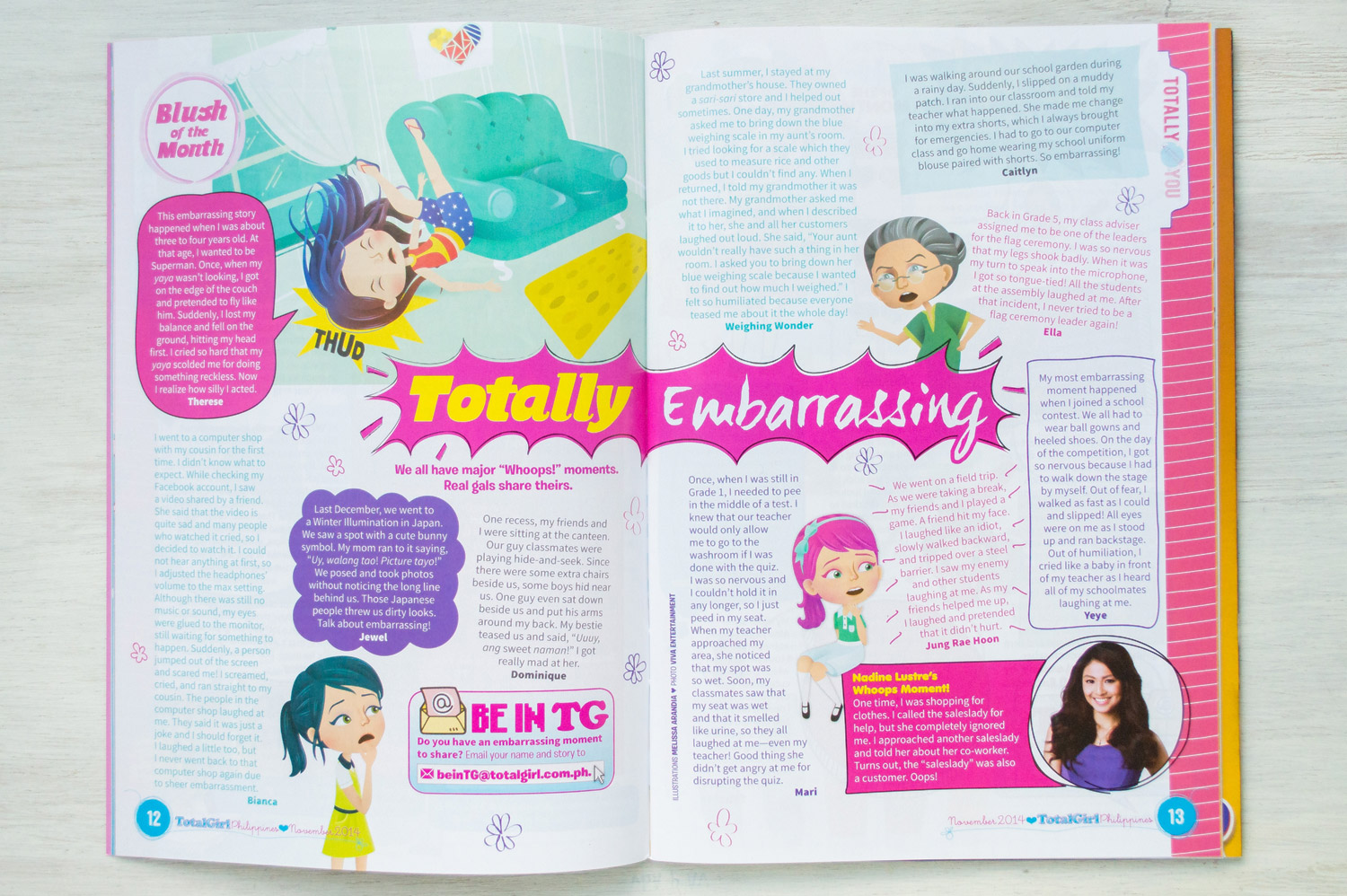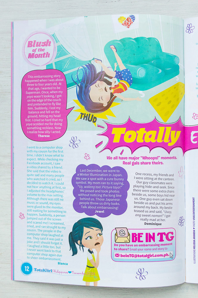 Last month was just a collection of past “Totally Embarrassing” stories, so in this month’s issue of Total Girl Philippines, my new illustration will get a taste of the magazine’s new layout.