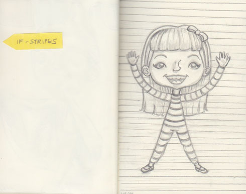 Because I love stripes, I sure can’t miss this week’s Illustration Friday. I played around with textures and ended up putting just little touches on both the character and the background.