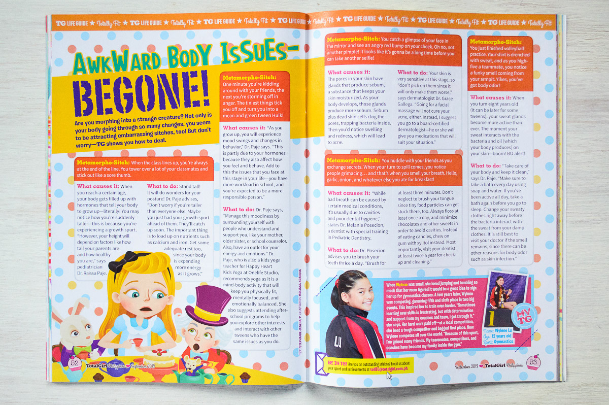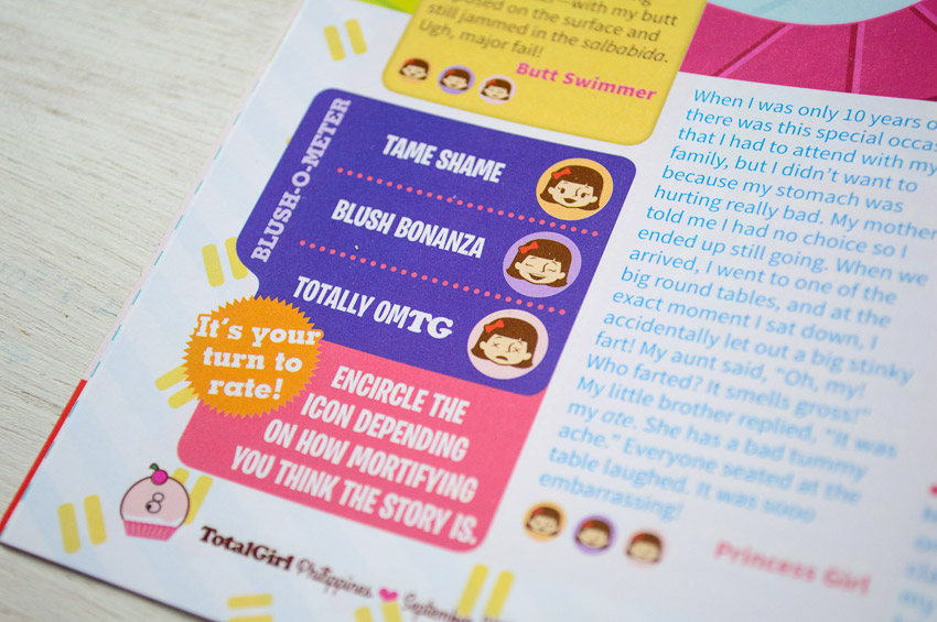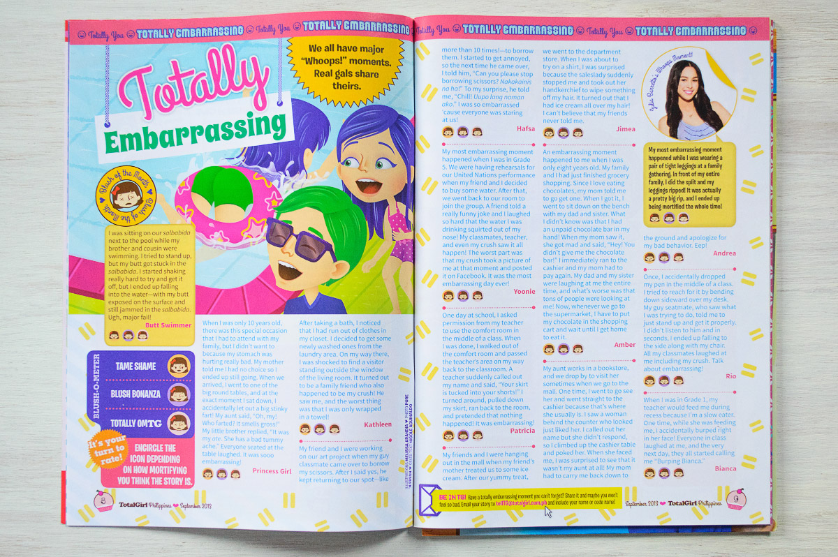 Total Girl Philippines is celebrating their 9th anniversary this month. This means a new look for the magazine. I’m still doing the illustrations for the “Totally Embarrassing” section and they alloted a bigger space for this (yay!). It now covers a little over half of the page.